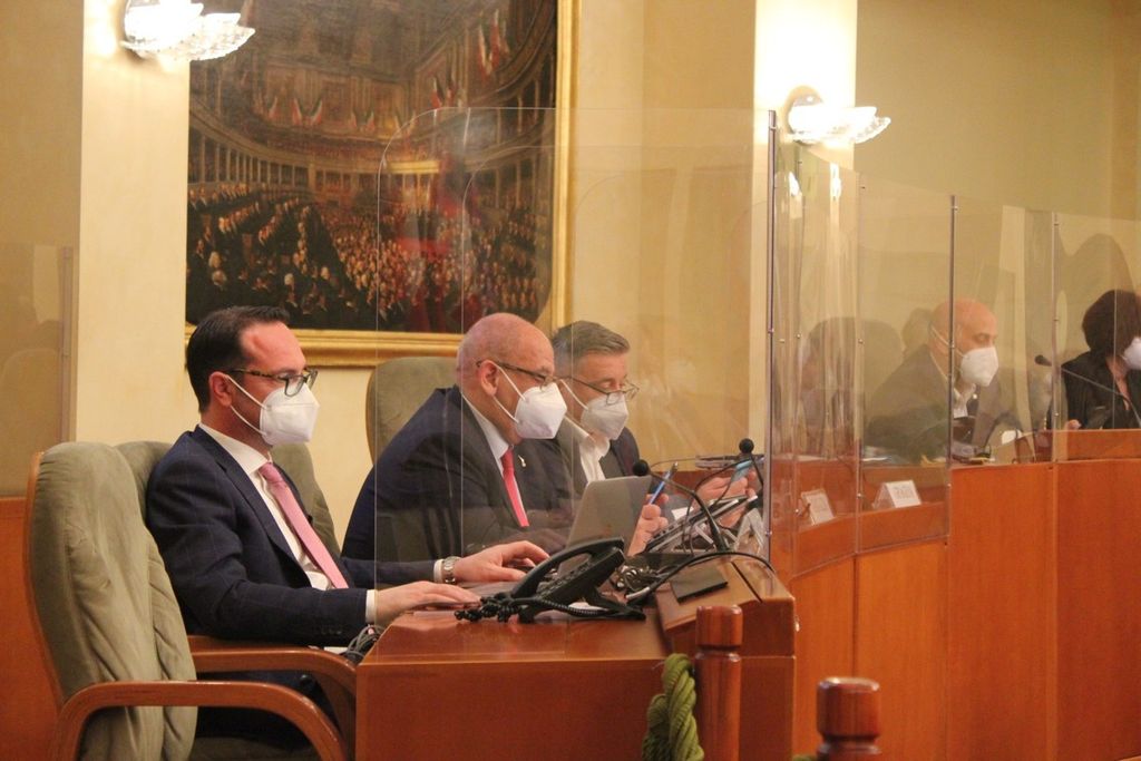 Per l'occasione, l'Aula consiliare è stata allestita in sicurezza: tra un seggio e l’altro dell’emiciclo sono stati installati divisori in plexiglass e tutti i consiglieri indossano - anche durante i loro interventi - le mascherine Fpp2, come richiesto dalle normative nazionali.
