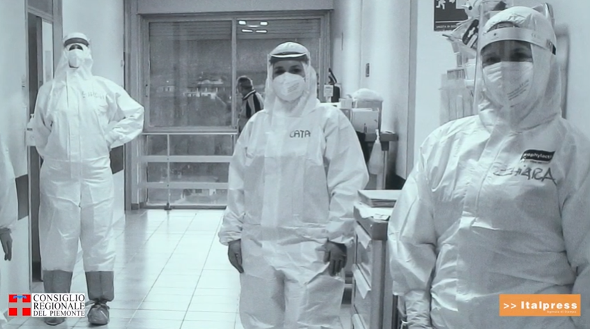 “R-Esistiamo con umanità" è il titolo della mostra nelle vetrine dell'Urp del Consiglio regionale del Piemonte che raccoglie gli scatti di Piero Nizzia all'ospedale di Courgnè all'epoca del covid.