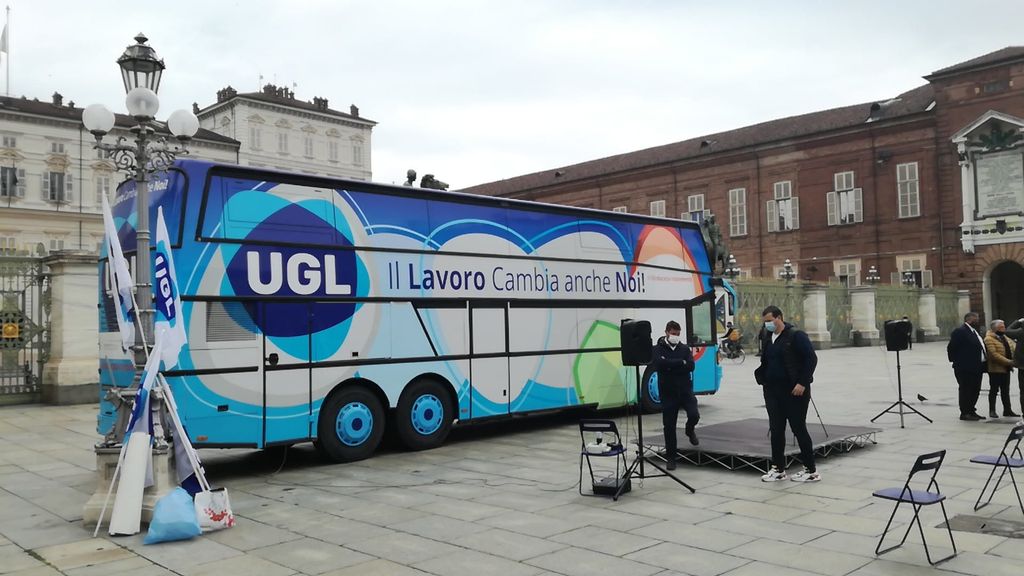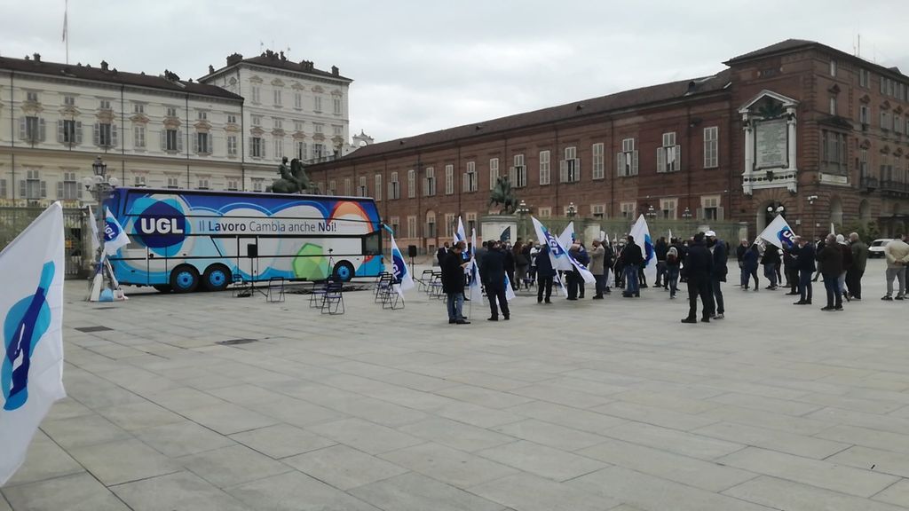 Trentuno tappe, prima di arrivare sotto la Mole. Il tour dell'Ugl - partito da Roma e passato per Napoli oltre ad altre grandi città - fa la sua fermata oggi a Torino, in attesa di arrivare alla conclusione domani, in occasione del Primo maggio, a Milano.