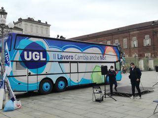 Trentuno tappe, prima di arrivare sotto la Mole. Il tour dell'Ugl - partito da Roma e passato per Napoli oltre ad altre grandi città - fa la sua fermata oggi a Torino, in attesa di arrivare alla conclusione domani, in occasione del Primo maggio, a Milano.