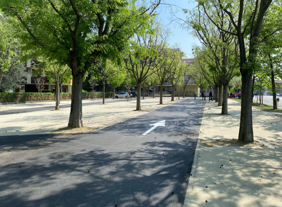 "Abbiamo rifatto completamente la pavimentazione che era danneggiata dalle radici degli alberi – spiega il vicesindaco Giancarlo Brino - Abbiamo sopraelevato la superficie con un riporto di terra, preservando gli alberi, e abbiamo posato autobloccanti drenanti che permettono, tra l'altro, di assorbire le piogge".