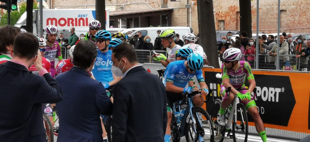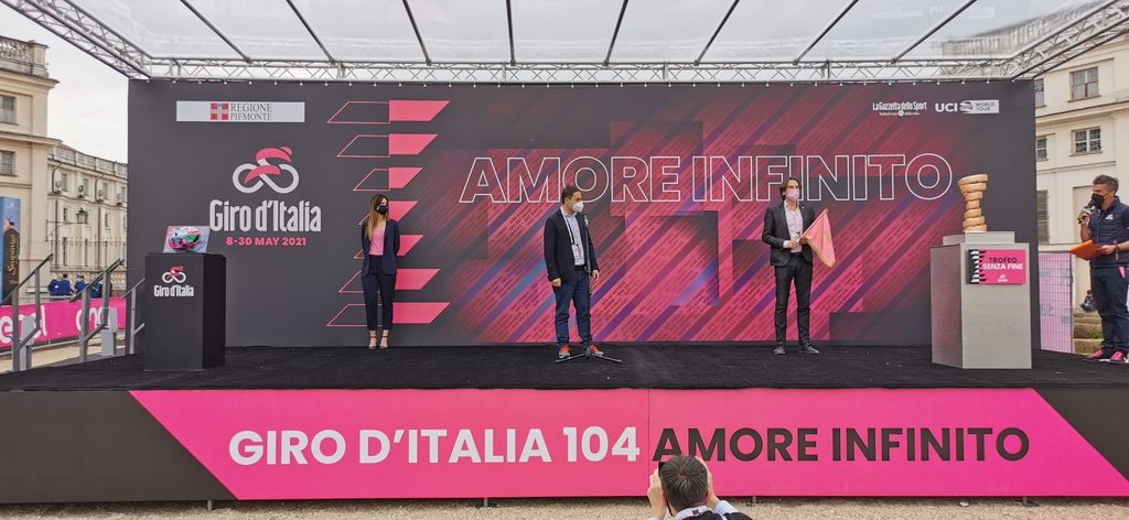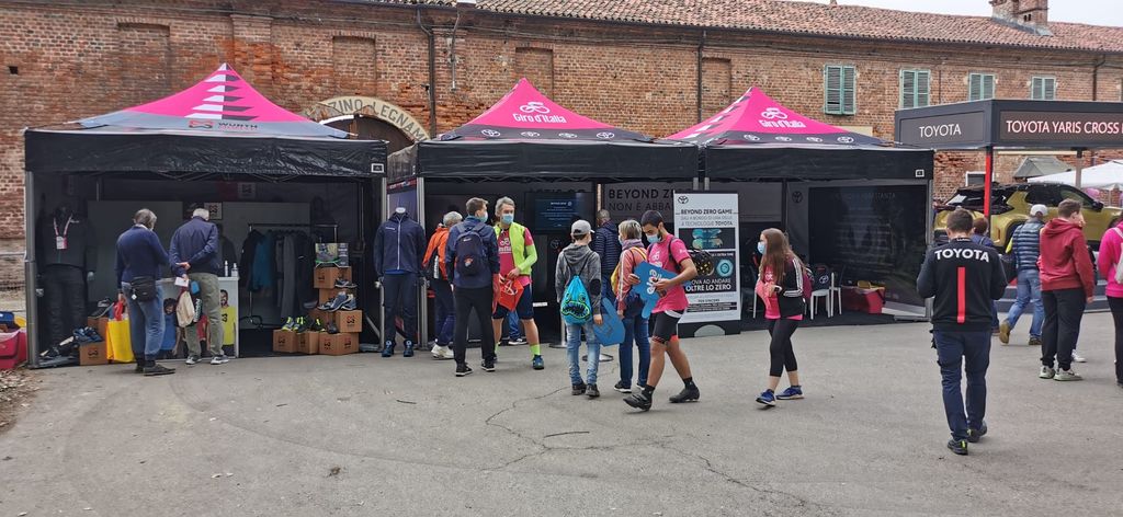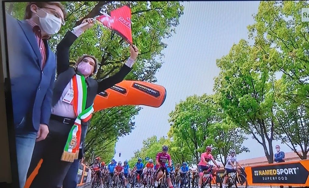 Nel villaggio di partenza anche Madama Farina, Monsù Panaté e il gruppo storico dei Conti Occelli, le maschere locali maschere locali. Monsù Panatè è il panettiere, il rappresentante l’arte panificatoria tipica della Borgata di Nichelino, mentre Madama Farina incarna i terreni agricoli di Stupinigi coltivati a grano per la produzione di farina. Da loro e dai presenti che hanno popolato gli stand sistemati attorno al percorso gli applausi più scroscianti sono andati all'indirizzo della maglia rosa Gamma, piemontese di Verbania, che oggi punta a difendere il simbolo del primato.