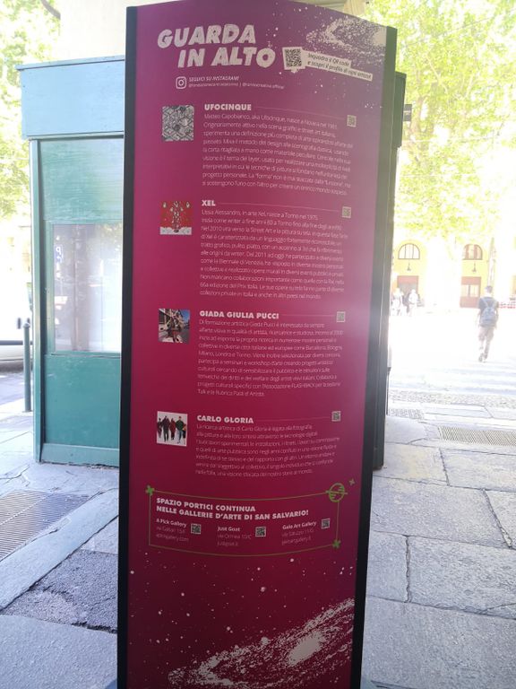 I pannelli rimarranno appesi fino a Natale, per poi essere spostati in un'altra parte di Torino. Nel futuro di via Nizza è atteso un intervento ulteriore, per allestire in questa parte di portici una galleria di video art e video mapping.