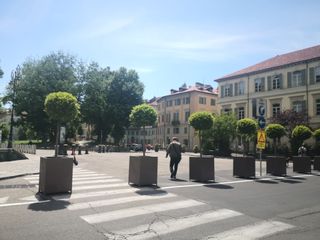 Una piazza "car free" davanti alla scuola Tommaseo. Il Comune ieri ha collocato le fioriere che chiudono di fatto l'accesso al traffico nel tratto di piazza Cavour, tra via San Massimo e via Provana.