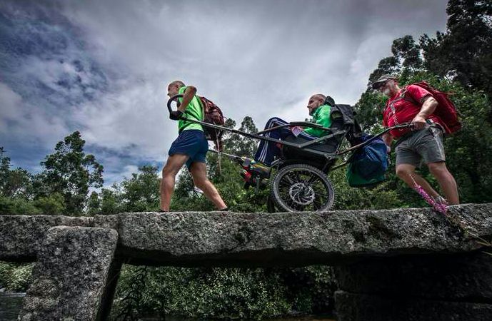 Nel 2015 Matteo ha deciso di raggiungere Santiago de Compostela in sedia a rotelle: 7 giorni di cammino, da O’ Cebreiro a Compostela, 160 chilometri in totale, con in media 25 chilometri percorsi al giorno su una sedia a rotelle tutta speciale, chiamata Joelette.