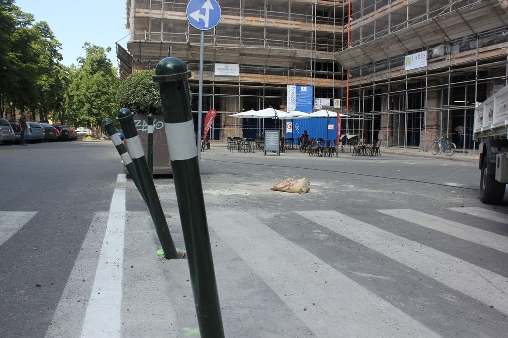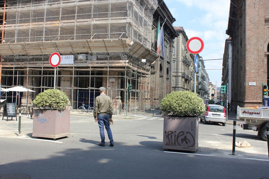 Sei fioriere imbrattate, una ventina di paletti con attorno cantieri e ponteggi. Se il buongiorno si vede dal mattino, è facile immaginare che la pedonalizzazione del Polo del ‘900, nella piazzetta Antonicelli, possa essere mal digerita dal tessuto commerciale del quartiere.