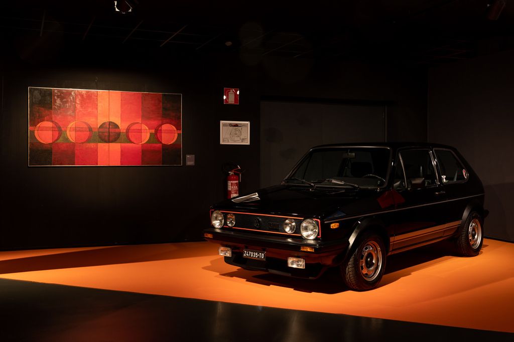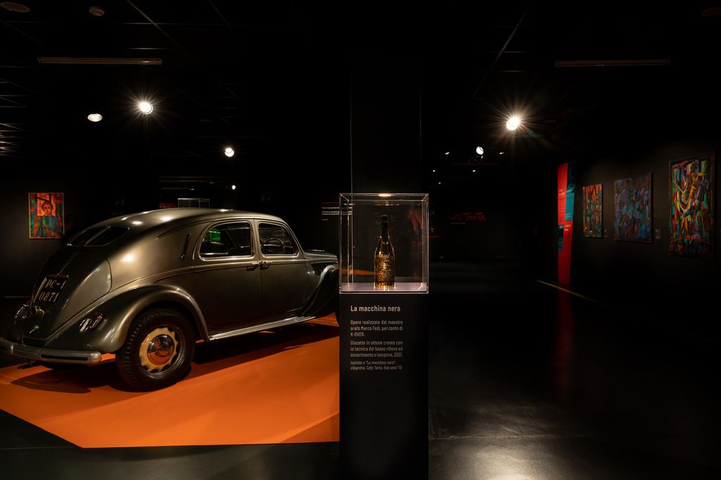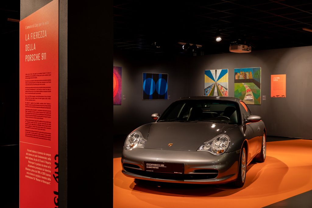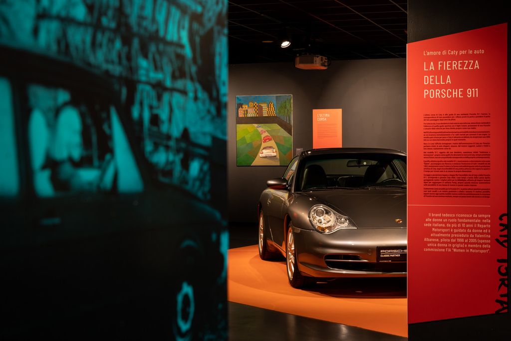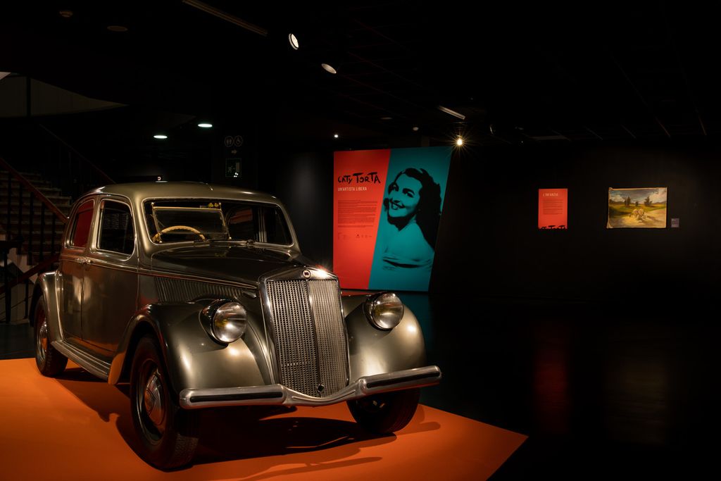 Accanto alle opere pittoriche di Caty Torta sono esposte alcune delle auto sportive che l’hanno accompagnata in “gara” e nella vita: una Lancia Aprilia del 1937, come quella che il padre le regalò per il suo 18esimo compleanno e con cui prese parte alla MilleMiglia; una Volkswagen Golf GTI del 1981, che le permetteva, ormai adulta, di ingaggiare sfide coi “pivelli” ignari; infine una Porsche 911 Carrera, modello 996 del 2003, rappresentativa della grande passione di Caty per vetture eleganti, sinuose, dal motore ruggente, audaci ma sempre fedeli a loro stesse, esattamente com'è stata lei per tutta la vita.