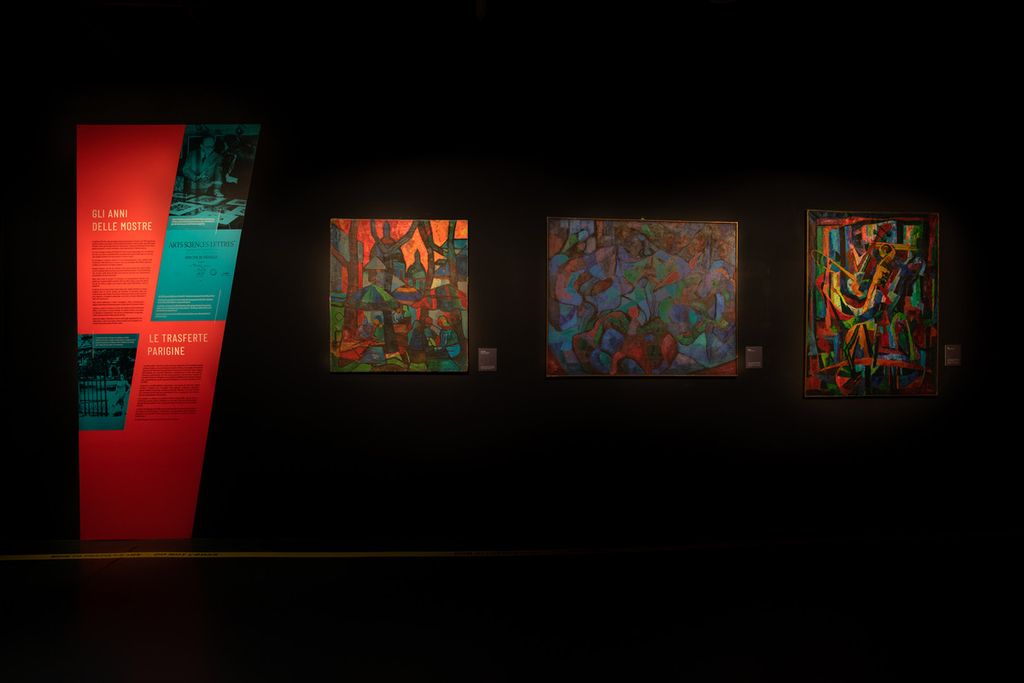 In mostra una selezione di 16 opere - dipinti e bozzetti appartenenti alla collezione privata del figlio Cesare Denoyè -, in un percorso espositivo che si snoda fra le esperienze cardine della sua ricerca: le Mille Miglia, il maestro Casorati, l’avanguardia torinese e Parigi. Un'evoluzione del segno pittorico dalla formazione alla maturità artistica.