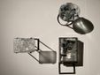Otto sfere di vetro serigrafato con inclusioni di zircar, ferro, motori elettrici e spot teatrali sono collegati e uniti in una struttura modulare che richiama la precisione razionale di un laboratorio chimico, mentre i volti disegnati che emergono sotto la superficie diafana rimandano, rovesciandone i presupposti, agli studi fisiognomici di lombrosiana memoria. Ne risulta un'installazione di forte impatto visivo ed emotivo, che invita l'osservatore a venire a patti con una spinta empatizzante ingabbiata nel rigore scientifico.