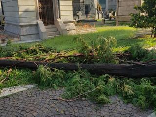 Maltempo, alberi crollano al cimitero Monumentale: tombe danneggiate