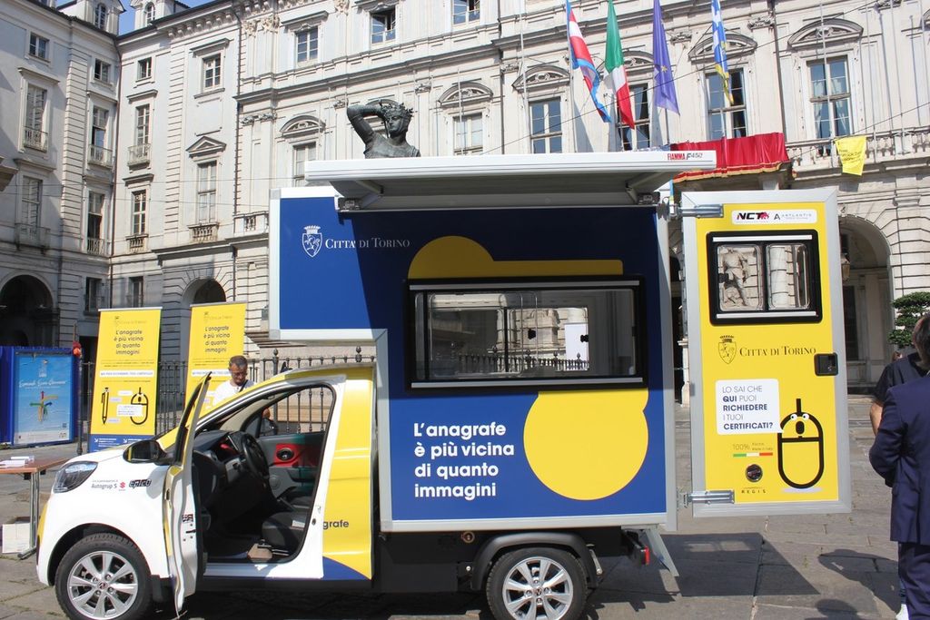 L’anagrafe arriva dai cittadini e lo fa su un camper elettrico. E’ stato presentato oggi in piazza Palazzo di Città Green Epic(0), nuovo mezzo in dotazione all’Anagrafe che i torinesi troveranno nei vari mercati, piazze e vie per offrire ai cittadini numerosi servizi demografici.