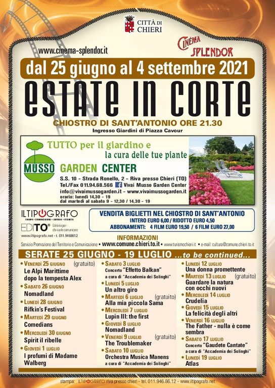 Dichiara l’assessore alla Cultura Antonella Giordano: "Dopo i tre giorni dedicati alla Festa della Musica, ora entra nel vivo il cartellone estivo chierese, con proposte che sapranno attrarre ogni genere di pubblico: cinema, teatro, eventi, mostre, spettacoli e ancora tanta musica. Dopo tanti mesi di restrizioni a causa dell’emergenza sanitaria, i cittadini possono finalmente tornare a partecipare dal vivo alle numerose proposte culturali ed artistiche organizzate e sostenute dall’amministrazione comunale. Una ripartenza culturale, che va di pari passo alla campagna vaccinale, per tornare alla normalità. Un momento molto atteso dagli operatori culturali e dello spettacolo dal vivo del territorio, per troppo tempo costretti alla non attività. Il primo obiettivo del cartellone estivo, infatti, è quello di valorizzare le tante iniziative che ci sono state proposte dalle associazioni del territorio, che avevano una gran voglia di ripartire dopo i lunghi mesi di lockdown".