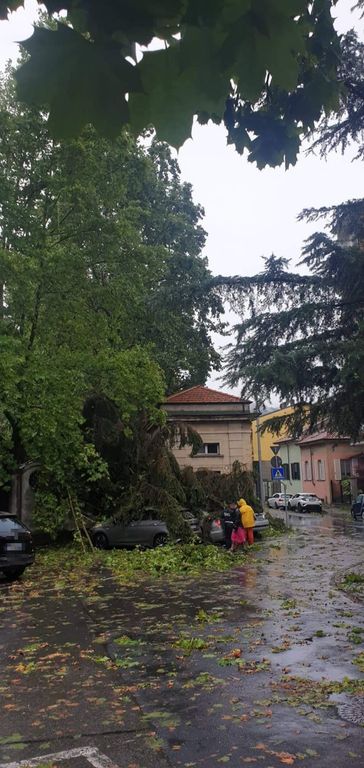Torna la grandine nel chivassese: alberi caduti sulle auto in viale Vittorio Veneto