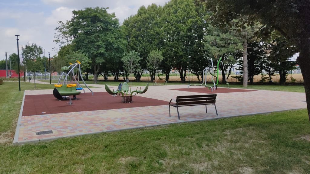 All'ombra di un bel gruppo di aceri ha trovato spazio la nuova area giochi per i bambini più piccoli e per i ragazzi, con robuste e colorate attrezzature di gioco di tipo inclusivo. Un bel filare di grandi Carpini costeggia tutto il giardino e conduce a un boschetto di alberi da fiore sotto cui sono stati posizionati alcuni attrezzi per la ginnastica dolce e il fitness, perfetti per chi vuol tenersi in forma ma anche per chi vuole muoversi con calma e fare la cyclette su una comoda sedia.