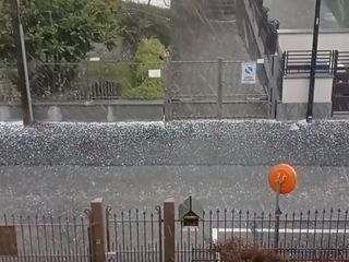 Secchiate d'acqua, ghiaccio e forte vento, conditi da tuoni e fulmini. E' il forte temporale che si è abbattuto oggi sul capoluogo. Divelti alcuni dehors. Si segnalano alberi caduti o completamente "spogliati" e traffico in tilt. Allagate cantine e soffitte