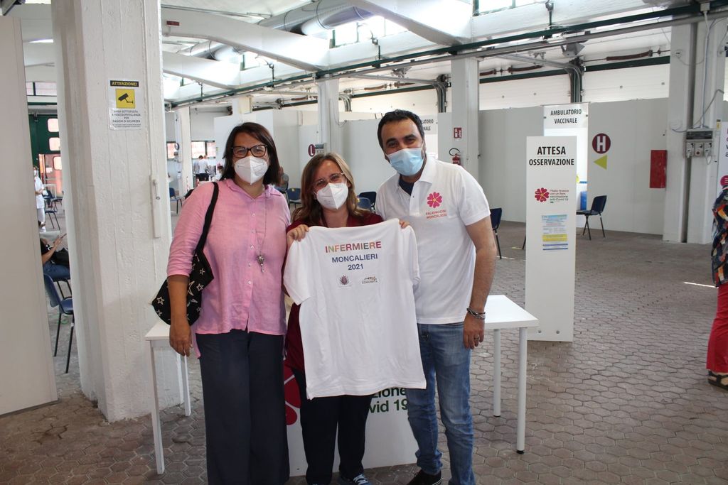 Ieri è stato il giorno della seconda dose di vaccino per il governatore del Piemonte Alberto Cirio, ma anche per il sindaco di Moncalieri Paolo Montagna. Il primo cittadino ha approfittato dell'occasione per consegnare, insieme all’assessore alla Salute Silvia Di Crescenzo, le magliette del “Palavaccini Moncalieri” alle donne e agli uomini impegnati sul campo: medici, infermieri, o.s.s, amministrativi e volontari.