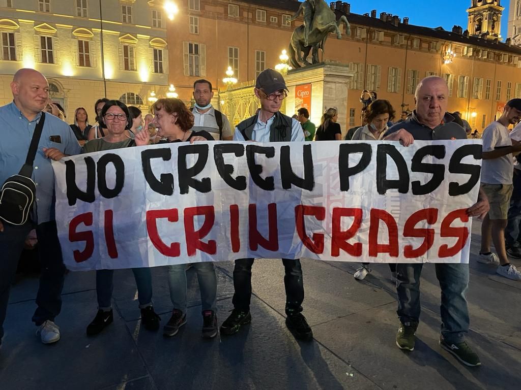 No green pass in piazza Castello: “Qui per informare la gente” [FOTO E VIDEO]
