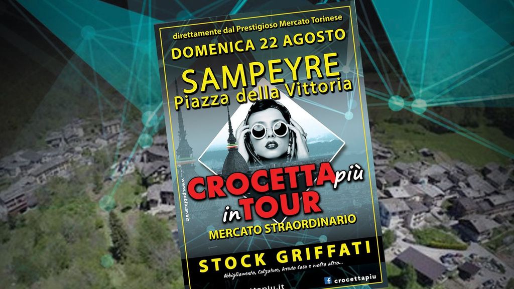I Saldi griffati Crocetta Più ti attendono il 22 agosto a Sampeyre, in Piazza della Vittoria, per una giornata di shopping e griffe direttamente dal prestigioso mercato torinese.