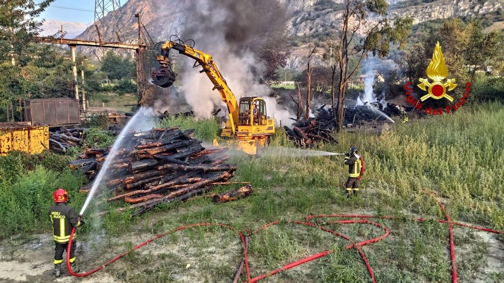 Grosso incendio in una falegnameria di Bussoleno, Vigili del Fuoco in azione (FOTO e VIDEO)