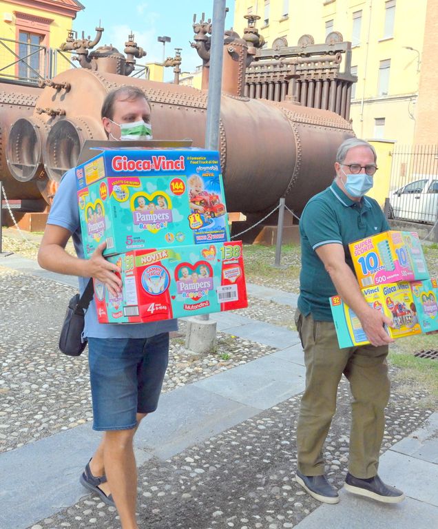 Tutti in coda a Settimo per portare aiuto e generi di ogni tipo ai profughi afghani (Foto: Tancredi Pistamiglio)