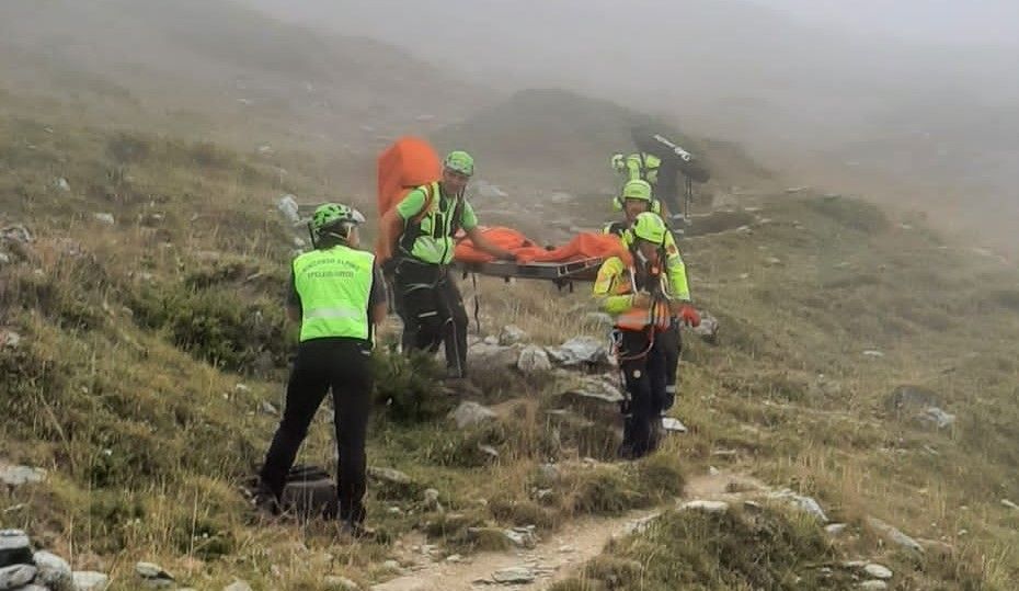 Difficile intervento a 2.350 metri d'altitudine. L'eliambulanza è stata costretta a depositare l'equipe di intervento 150 metri di dislivello a valle dell'infortunato
