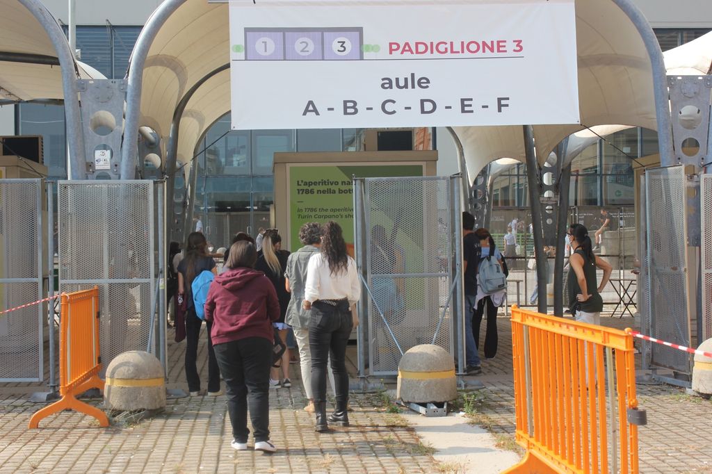 In tempo di Covid e di Green Pass, ovviamente, tutto è cambiato: per accedere al Lingotto Fiere ai giovani viene richiesta la certificazione verde e un'autocertificazione. Chi non li presenta, non può entrare e sostenere il test. I controlli proseguono con il passaggio al termoscanner, con la rilevazione della temperatura: chi ha oltre 37,5 gradi viene fatto attendere per qualche minuto per una nuova misurazione che, se confermata, conduce il candidato alla tenda del medico. Ovviamente, per tutelare la sicurezza di tutti, in caso di febbre l'ingresso è vietato.