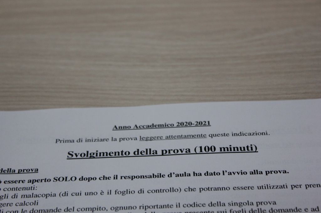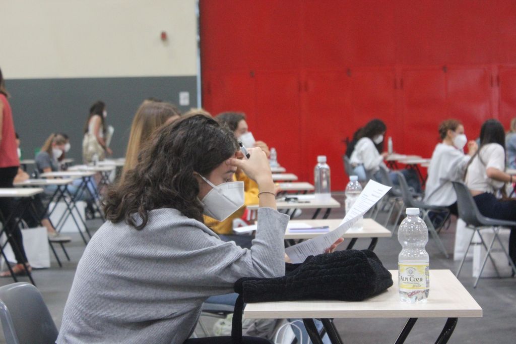 Ogni candidato poi riceve una busta in cui inserire gli effetti personali. La busta, una volta iniziato il test di ingresso, viene sigillata. Gli spazi per gli esami sono stati invece allestiti al padiglione 3 di Lingotto Fiere, in grado di garantire il distanziamento e l'aerazione dell'ambiente. Ovunque, sparsi tra i banchi, si intravedono igienizzanti. I futuri universitari, rigorosamente sempre con la mascherina indossata, hanno 100 minuti per svolgere la prova. Chi ha bisogno di andare in bagno alza la mano e viene accompagnato all'esterno.
