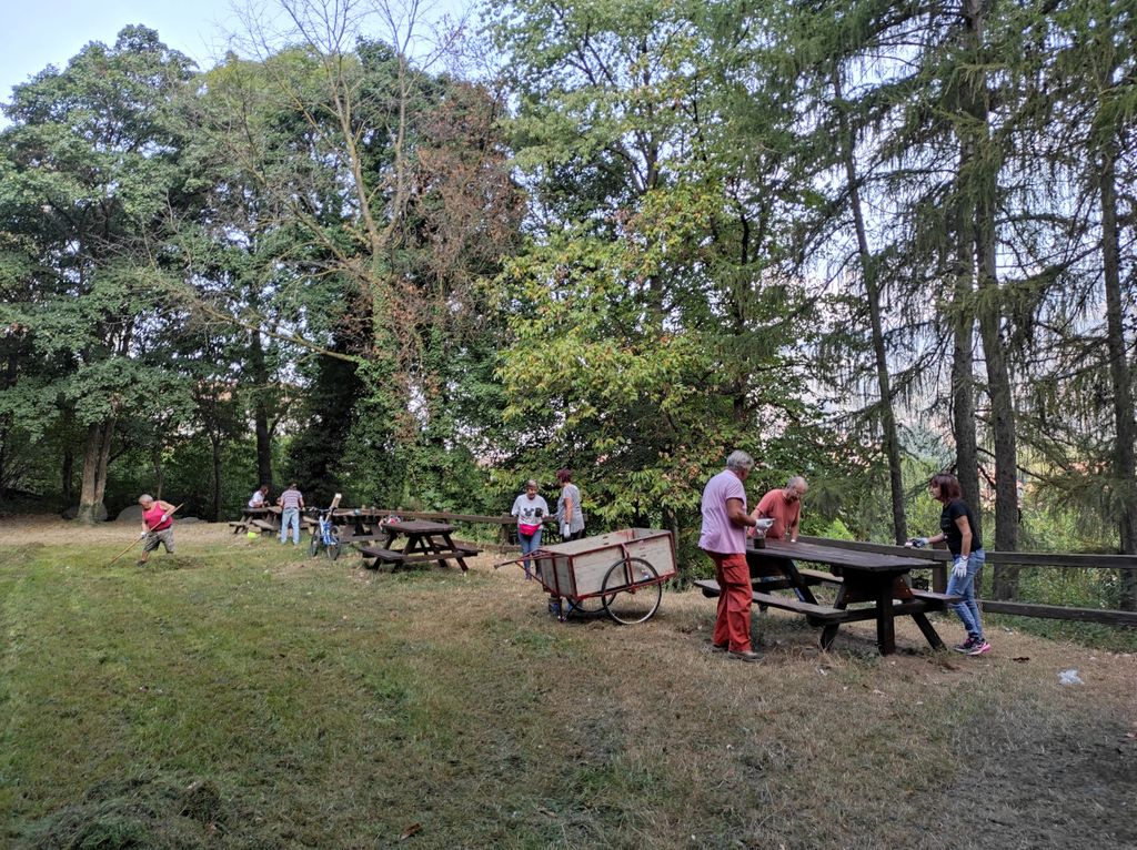 Intervento simile, ma di dimensioni maggiori, è stato eseguito nei castagneti sopra gli impianti sportivi di via Roma, con taglio ed asportazione di erba, rovi e arbusti e manutenzione di tavoli e staccionate. Poco più a monte, nella zona della sorgente della “Font do Frà”, di facile accesso dalla mulattiera della Sacra di San Michele, è stata sostituita la cartellonistica con una realizzata a mano per l’occasione e si sono nuovamente resi agibili l’area e il sentiero, con la rimozione degli alberi caduti.