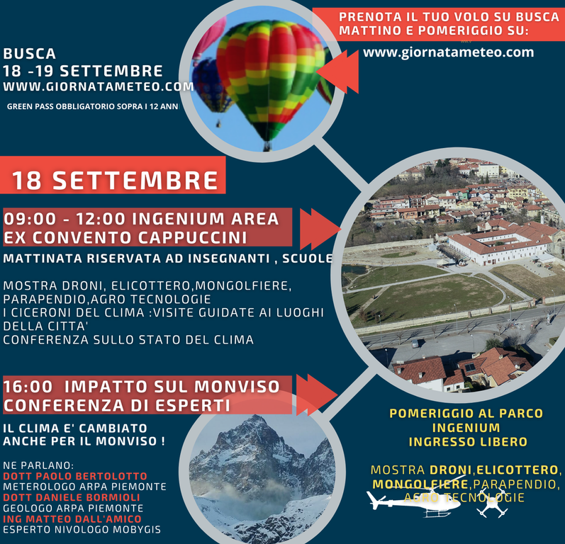 Una due giorni di eventi per parlare del cambiamento climatico con laboratori interattivi per insegnati, studenti con un percorso didattico adatto a tutte le età. Conferenze con esperti del clima tra cui il Dott Paolo Bertolotto Meteorologo di Arpa Piemonte e l’Ing Matteo dell'Amico esperto di nivologia