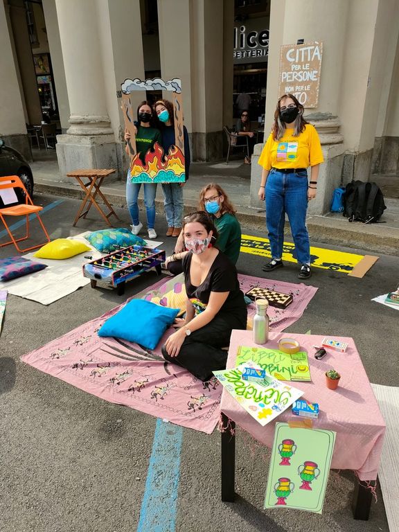 Nello spazio temporaneamente liberato, l’associazione ha allestito un’area lettura con tappeti, cuscini e libri a disposizione dei passanti e una zona ludica con biliardino, giochi da tavolo e carte. Per i più piccoli e le più piccole, largo alla creatività con gessetti, colori e fogli. I cittadini hanno anche potuto assistere a un concerto dal vivo in un’area insolita, con le performance musicali di BLAUI e Andrea Denanni.