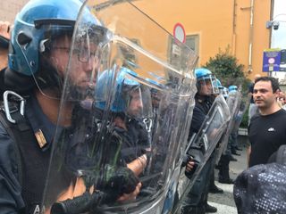 Un migliaio i manifestanti, tra cui no Tav, anarchici e antagonisti. Polizia schierata in assetto antisommossa di fronte alla sede Rai