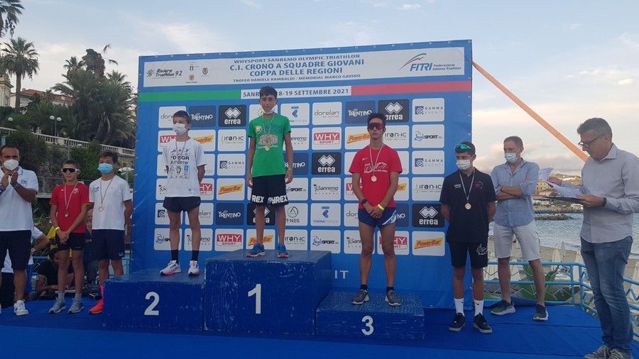 Nella giornata di domenica si è svolta la spettacolare gara della Coppa delle Regioni, gli atleti sono stati convocati dai Comitati Regionali in base alle regioni di residenza. Gabriele Ferrara convocato nella staffetta Ragazzi della Regione Liguria ha conquistato con i suoi compagni di squadra l’argento. Buoni piazzamenti per Erica Pordenon e Lorenzo Gatti, convocati nelle staffette piemontesi, sempre della categoria ragazzi. Tra gli Youth ben 4 i convocati della formazione verde-turchese-oro, la biellese Costanza Antoniotti, il cuneese Riccardo Giuliano, la torinese Silvia Turbiglio e l’arquatese Mirco Pordenon che sono stati inseriti tutti insieme nella quinta staffetta piemontese e che è diventata una staffetta con atleti tutti di Valdigne Triathlon.