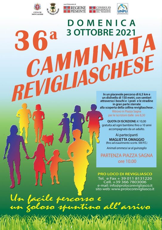 La manifestazione è sostenuta da Città di Moncalieri, Regione Piemonte, Consiglio Regionale del Piemotne e Unpli. Due i punti ristoro lungo il percorso, più uno all'arrivo dove i due ristoranti revigliaschesi, Taverna di Fra Fiusch e Ca Mentin, collaboreranno con la Pro Loco Revigliasco nell'offrire un gustoso spuntino. La Camminata non competitiva si svolge su un percorso facile e panoramico, con un dislivello di 150 metri.