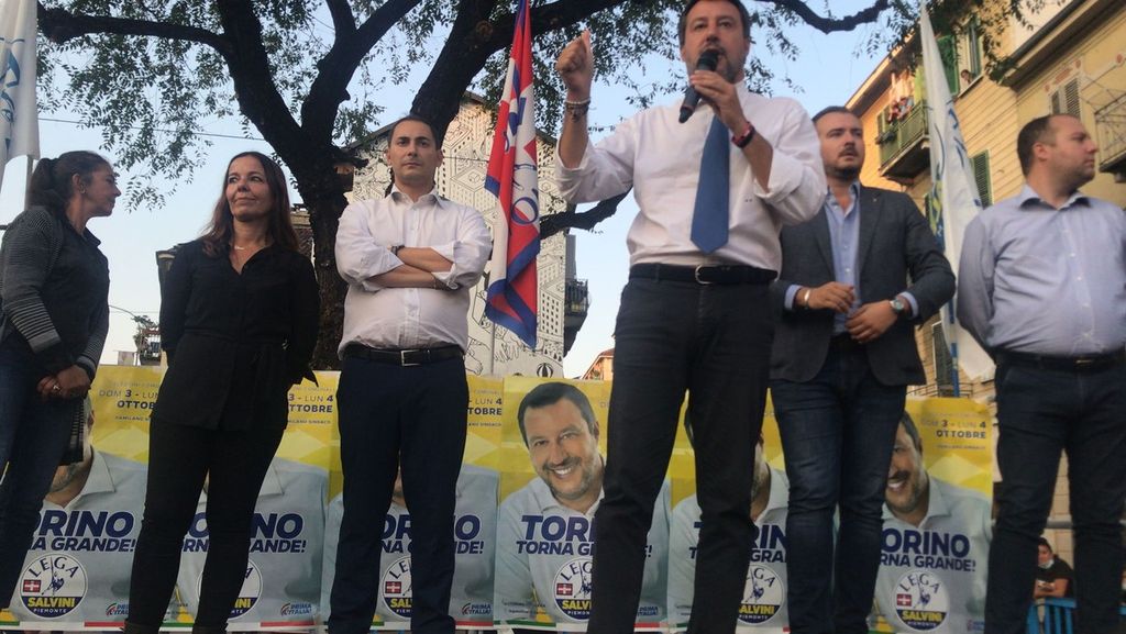 Poi Salvini ha garantito di non volere "nessun aumento dell'aumento Imu e delle tasse sulla prima e la seconda casa", si è detto pronto a dare consigli alla ministra Lamorgese per affrontare il tema degli sbarchi, concludendo con un affondo nei confronti di Pd e Cinque Stelle: "Sono due facce della stessa medaglia, i torinesi se ne sono accorti in questi anni".