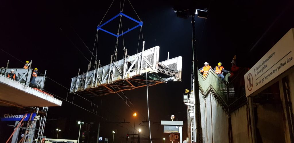 Nella notte tra il 4 ed 5 ottobre, cominceranno infatti i lavori per la posa di una parte della passerella pedonale che collega via Roma a via Caluso, sottoposta a restauro conservativo organizzato dall'amministrazione comunale e da Rfi, nell'ambito dei lavori di soppressione dei passaggi a livello.