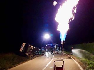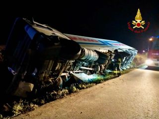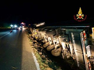 Vigili del fuoco in azione per rimuovere il bilico a Vigone [FOTO]