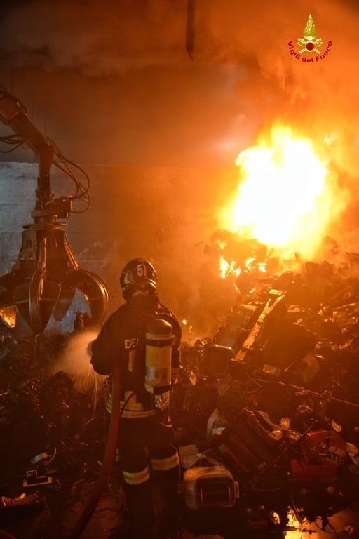 Il rogo si è sviluppato questa mattina all'interno di un'azienda che tratta materiali elettronici. I tecnici dell'Arpa stanno effettuando i test sull'inquinamento dell'aria