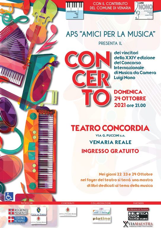 Il ventiquattresimo Concorso internazionale di Musica da Camera Luigi Nono si svolgerà dal 22 al 24 ottobre 2021 a Venaria, città in cui fu fondato dagli Amici per la Musica, ma dalla quale mancava da quattro anni.