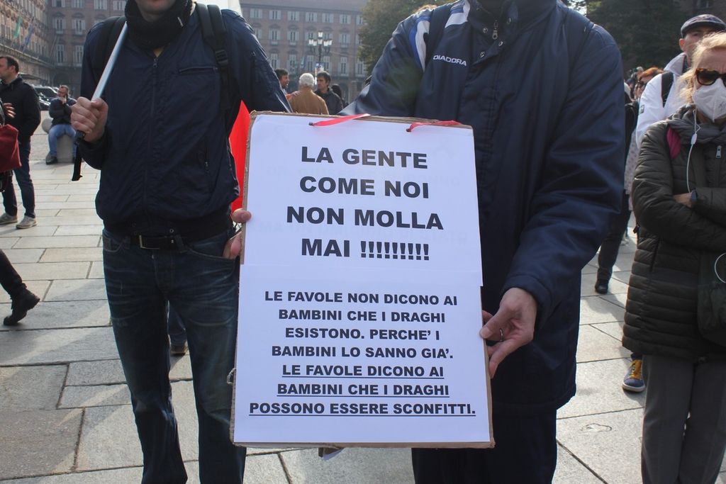 Proteste No Green Pass, in 500 in piazza Castello: “Nessun lasciapassare per poter lavorare”