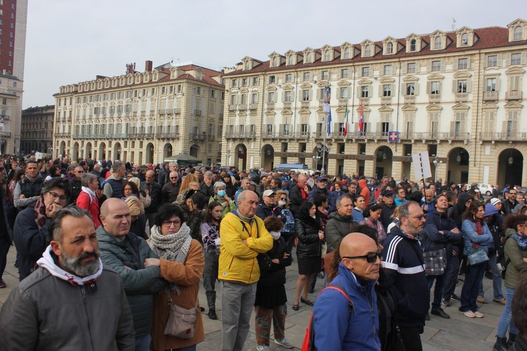 Autisti e controllori Gtt, dipendenti comunali, lavoratori di ogni tipo. Sono circa 500 le persone che questa mattina hanno manifestato in piazza Castello, nel giorno in cui è scattato l’obbligo di Green Pass sui luoghi di lavoro.