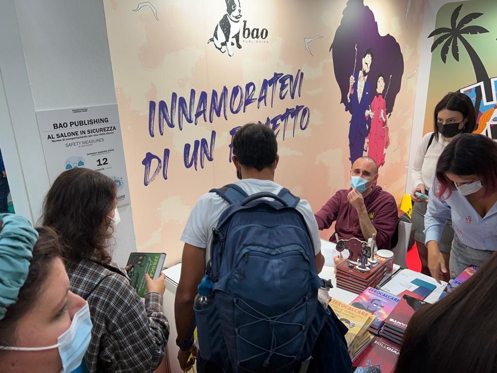 Tantissimi giovani, ma non solo, hanno preso d’assalto lo stand della sua casa editrice, la BAO, durante l’iniziativa di firmacopie. Le lunghe code di attesa sono stati una costane in questa terza giornata di Salone. Le file si sono formate anche davanti agli ingressi per ascoltare gli interventi di Cesare Cremonini e Carlo Verdone.
