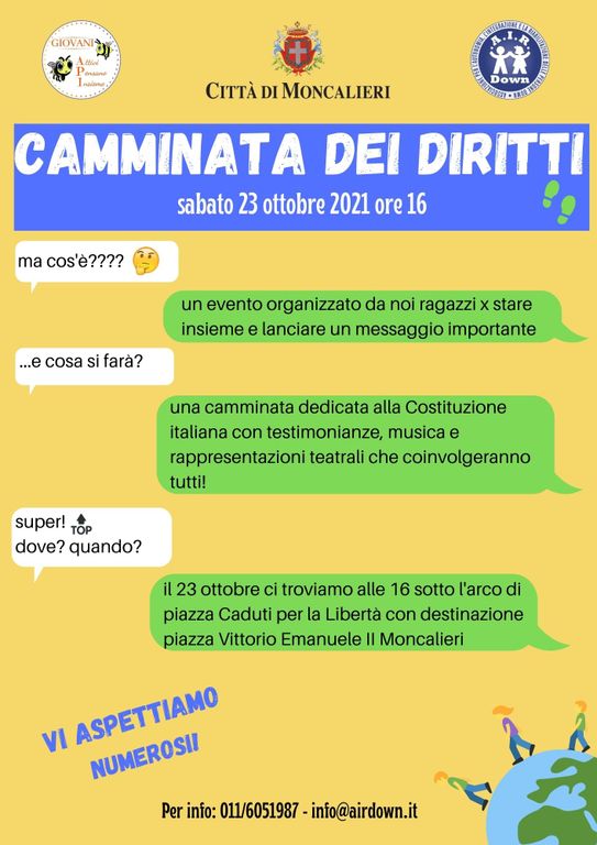 Perché è proprio qui nel territorio di MONCALIERI che è nata A.P.I. ed è proprio qui che vedrete i nostri giovani uscire per le strade e CAMMINARE per i DIRITTI.