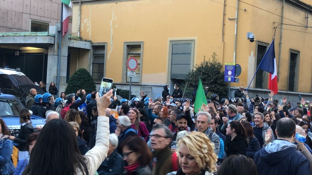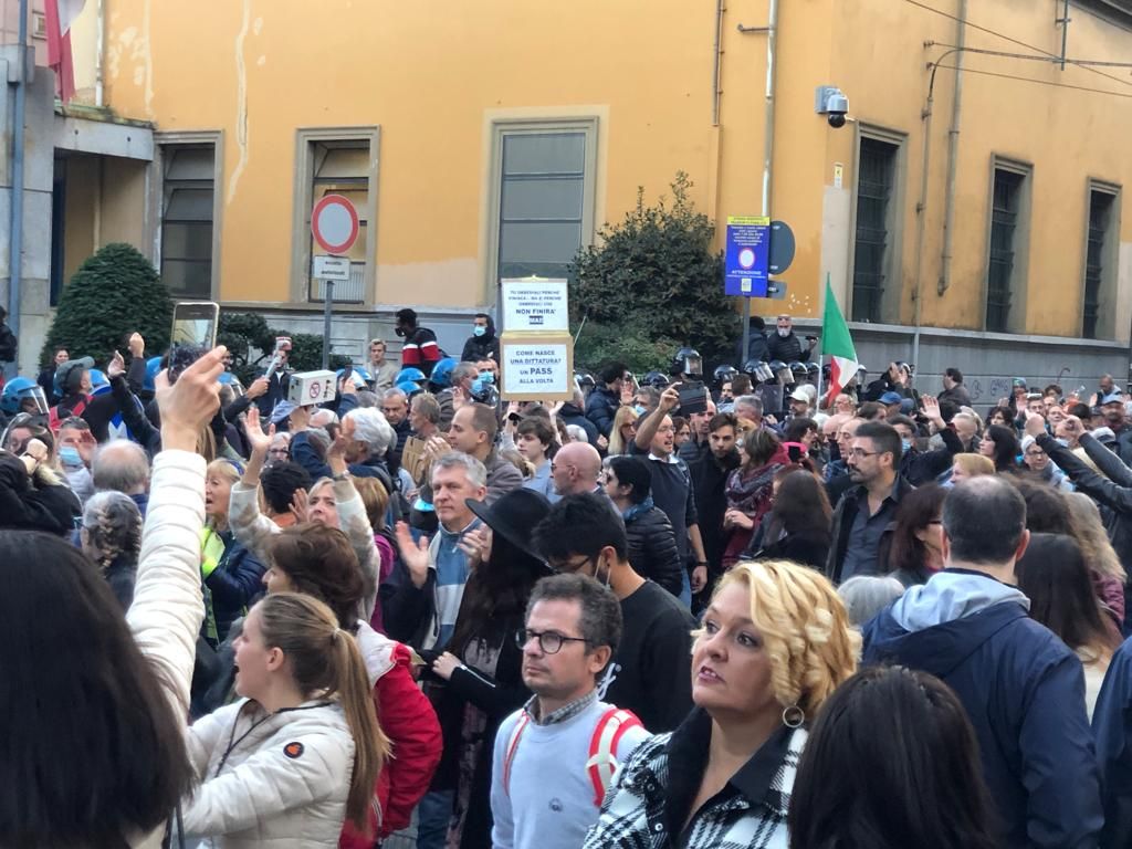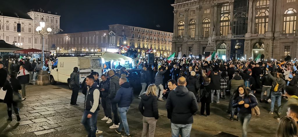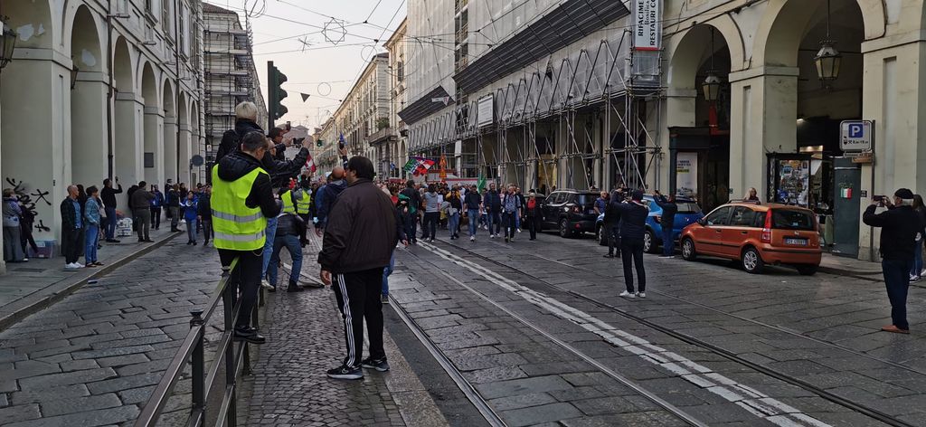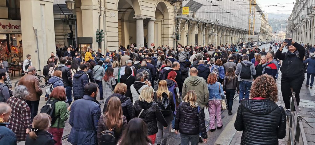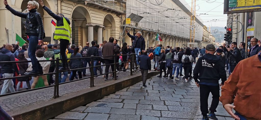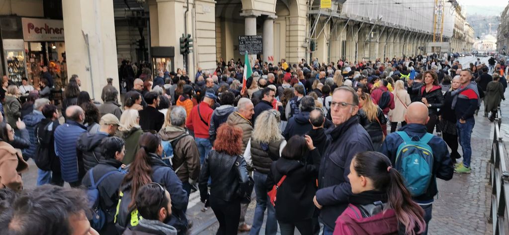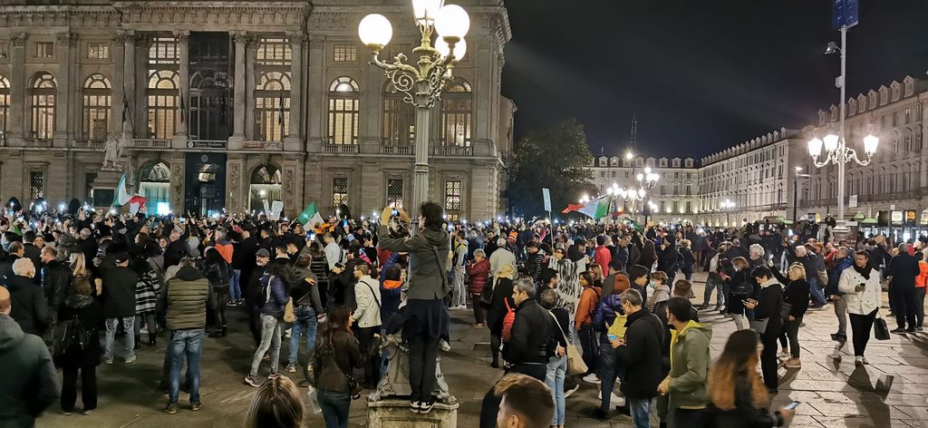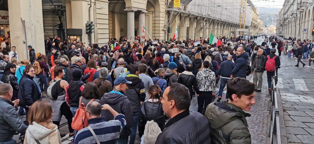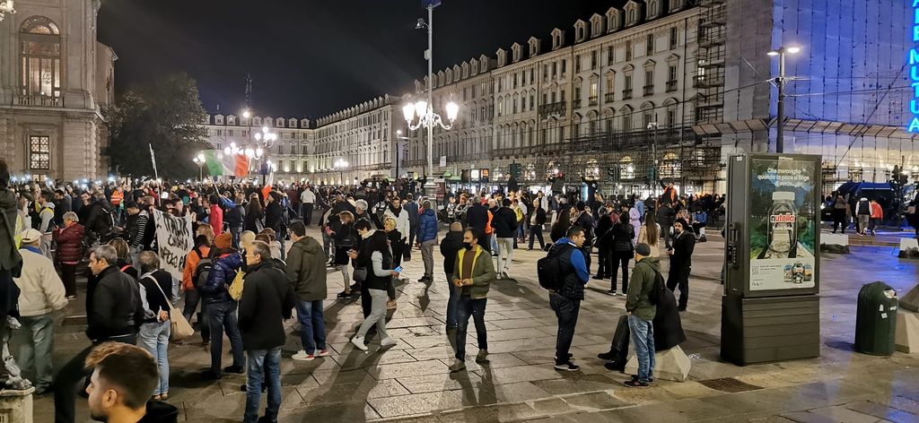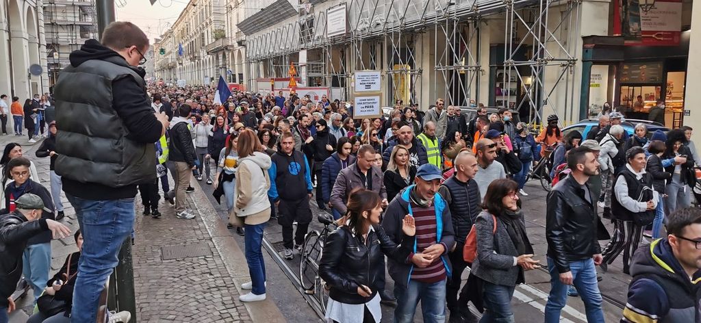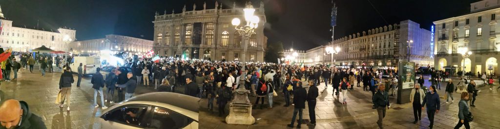 Alcune centinaia di persone si sono date appuntamento nel centro di Torino, nel tardo pomeriggio di oggi, 23 ottobre, per manifestare contro il Green pass per il 14esimo sabato consecutivo.