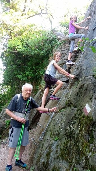 Grazie però a mio figlio Walter, che non si è arreso di vedere il suo papà “capocordata” ridotto così, ho ripreso già da un anno ad accompagnarlo alla base di piccole falesie come quella del Ponte del Diavolo a Lanzo, ove vi era anche chi praticava lo “slacklining” con un filo teso sul fiume Stura e dove la mia nipotina Kayla, ha iniziato a fare i suoi primi timidi passi d’arrampicata ben assicurata a una corda.