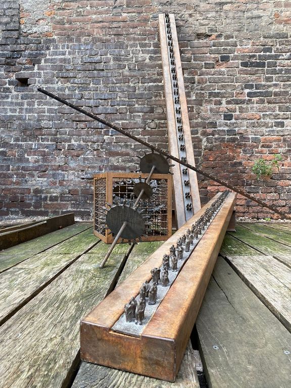 Nel giardino di Palazzo Madama Carlo D’Oria Colloca una scultura del 2010, "Ingranaggi", che rappresenta l’inizio della ricerca che conduce fino alle Sentinelle.