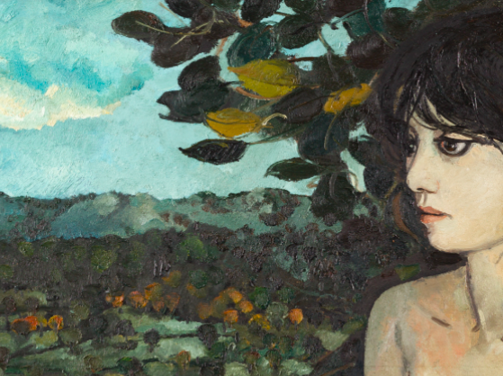 Si prosegue con una tappa tra le opere che vanno dal 1963 al 1970, un decennio importante per l’artista che dopo aver sperimentato l’arte informale sente la necessità di nuovi sviluppi: sceglie tele di grandi dimensioni e dà vita a un tratto che diventerà tipico della sua produzione. Ad accogliere in questa nuova fase il pubblico è la tela “La Sacra di San Michele”, del 1964, un omaggio alla val Susa, anch’essa esposta per la prima volta. Pochi i figurativi accuratamente scelti per la mostra: da “Ragazza Bergamasca” ad “Alberta”, il cui sguardo malinconico è stato scelto come copertina dell’esposizione.