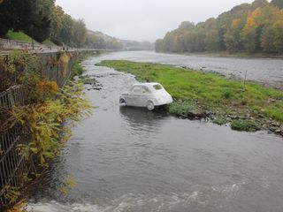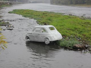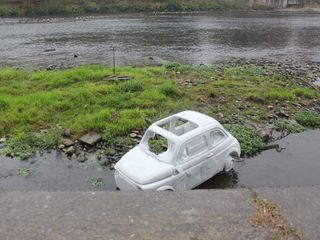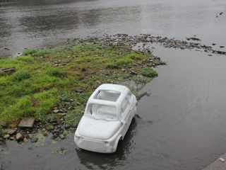 Una vecchia Fiat 500 in mezzo al fiume Po. Non si tratta di un’auto riemersa dal fiume, ma di un’opera d’arte che negli ultimi giorni ha incuriosito turisti e torinesi, a passeggio lungo i Murazzi.