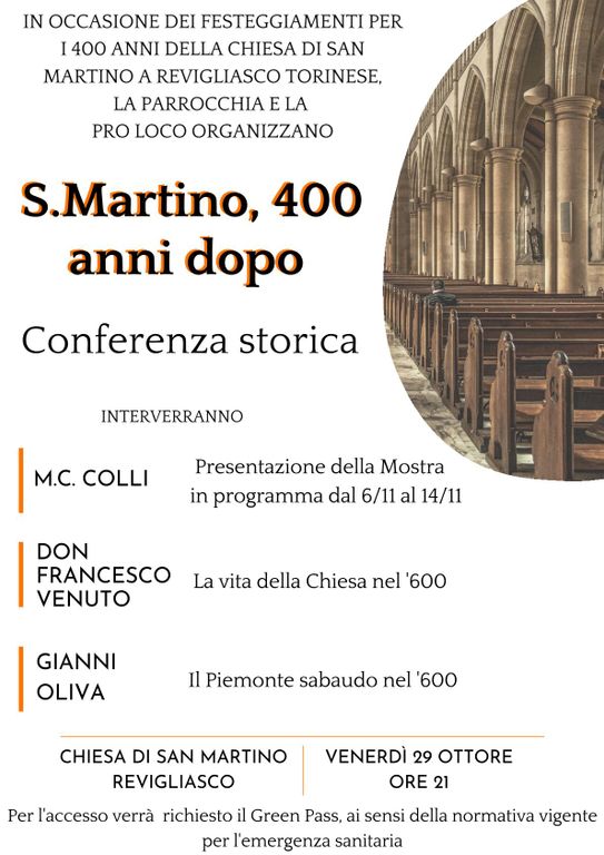 Dopo la serata del 29 ottobre, con l'approfondimento storico di Gianni Oliva e di don Francesco Venuto della Facoltà teologica di Torino, dal prossimo weekend inizierà la mostra curata da Maria Cristina Colli. Verranno esposti paramenti sacri, suppellettili liturgiche e devozionali, libri, dipinti, documenti e fotografie.