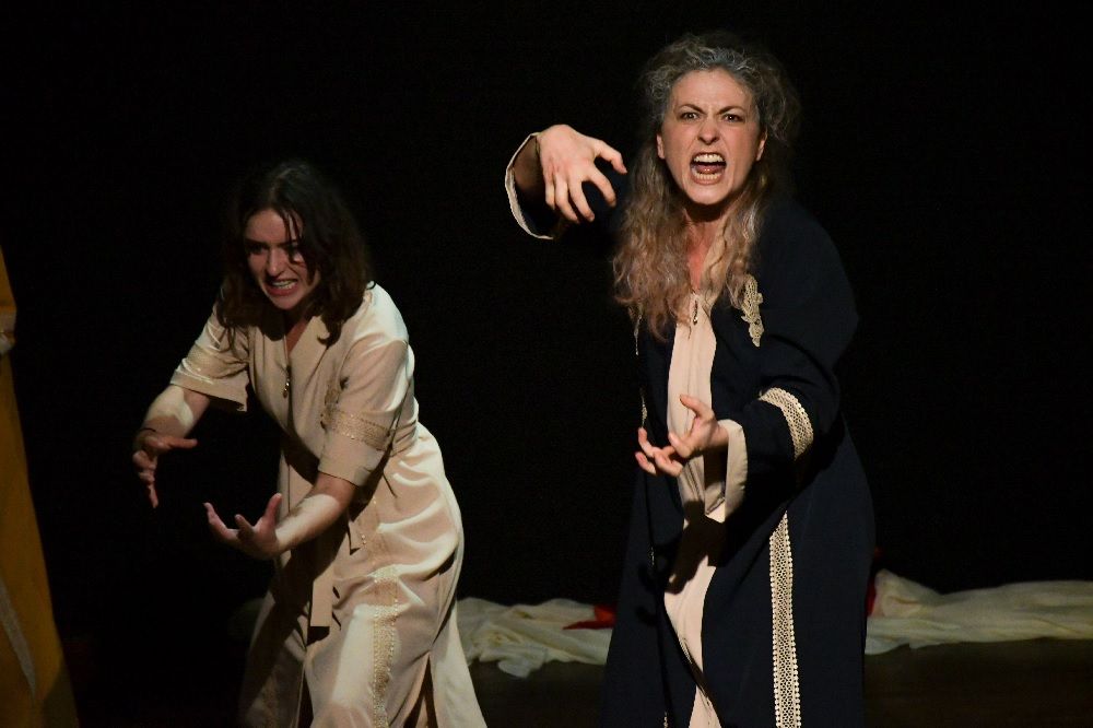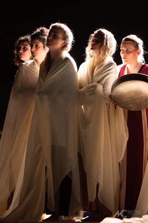 La riscrittura del testo, opera di Luigi Orfeo, attore e regista di opera lirica e di prosa che cura anche la regia, è frutto di una ricerca sul potere intrinseco della parola che ha dato vita a una vera e propria “lingua del Mediterraneo”, un melting pot di dialetti del sud Italia che danno allo spettacolo una componente ancestrale e profonda. Un vero e proprio codice, in grado di evocare un rito collettivo più che un atto performativo. Non esiste artificio scenico: i cambi di personaggio, l’intonazione dei cori a cappella armonizzati per cinque voci, tutto avviene sotto gli occhi dello spettatore.