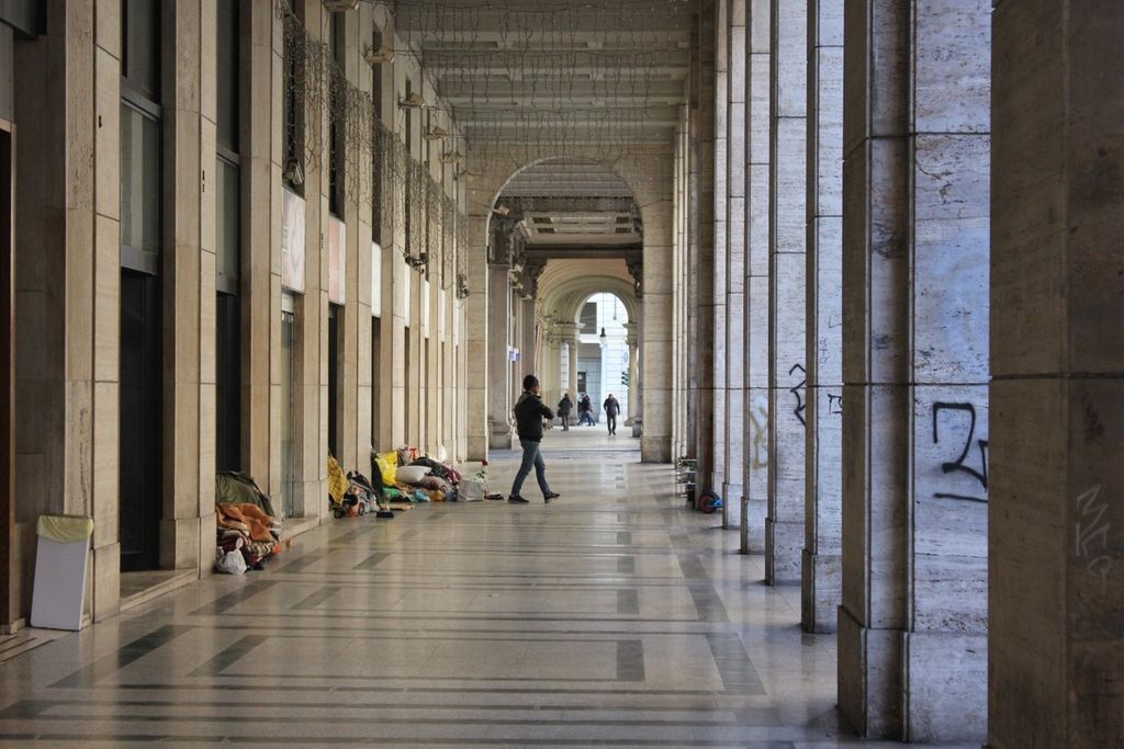 Nella via che collega la Galleria San Federico a via Pietro Micca, tra negozi chiusi e degrado sono rimasti solo più gli homeless